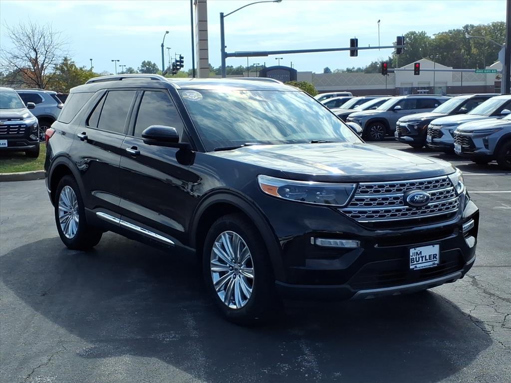 2022 Ford Explorer Limited Agate Black Metallic 10-Speed Automatic 4WD 2.3L EcoBoost I-4 CARFAX One-Owner. Clean CARFAX. Please call today (888) 475-3191. We are proud to be a GM Mark of Excellence Dealership. Come see why we are the #1 Chevrolet dealership in the Midwest. On top of that we have also been awarded Dealer of the year the last 8 years. Proudly serving: St. Louis, South County, Webster Groves, Creve Coeur, Kirkwood, Maryland Heights, Sullivan, Rolla, Columbia, Fenton, Chesterfield, St. Charles, Kansas City, Springfield, Jefferson City, and all of great Missouri and Illinois. While we make every attempt to ensure pricing accuracy. Dealer not responsible for computer or human error, dealer reserves the right to change prices due to human or computer error. In order to put a 24 hour hold deposit on vehicles, Financing must be secured thru Jim Butler Chevrolet Business Office and Cash Deals must be Electronically Transferred within Six Hours. Class IV Trailer Tow Package, Equipment Group 301A, Limited Convenience Package (110V/150W AC Power Outlet, 3rd Row PowerFold Seat, Hands-Free Foot-Activated Liftgate, Memory Drivers Seat, Power Tilt/Telescoping Steering Column, and Sideview Mirrors w/Gloss Black Caps), 12 Speakers, 1st Row Heated Seats, 20Premium Painted Aluminum Wheels, 3.58 Non-Limited-Slip Rear Axle Ratio, 3rd row seats: bench, 4-Wheel Disc Brakes, 4G LTE Wi-Fi Hotspot Removal Credit, ABS brakes, Air Conditioning, Alloy wheels, AM/FM radio: SiriusXM, Auto High-beam Headlights, Auto Start-Stop Removal, Auto-dimming Rear-View mirror, Automatic temperature control, Brake assist, Bumpers: body-color, Cargo Area Management System, Compass, Delay-off headlights, Driver door bin, Driver vanity mirror, Dual front impact airbags, Dual front side impact airbags, Electronic Stability Control, Emergency communication system: SYNC 3 911 Assist, Exterior Parking Camera Rear, FordPass Connect, Four wheel independent suspension, Front & Second Row Floor Liners (16