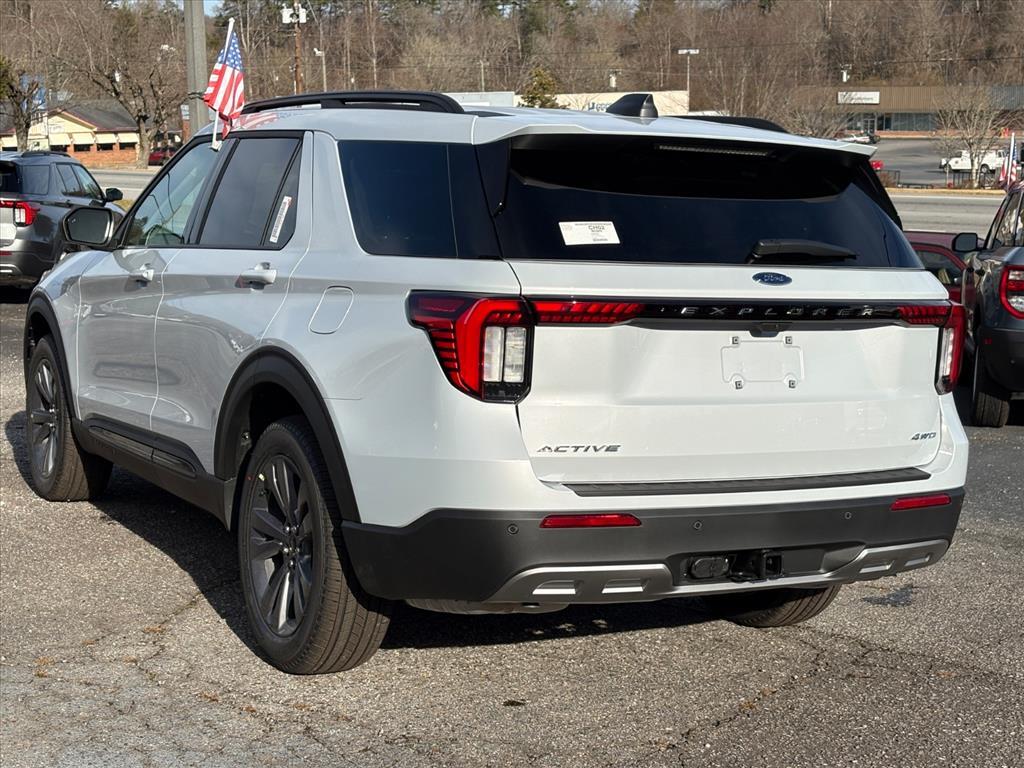 Space White Metallic 2026 Ford Explorer Active 4WD 10-Speed Automatic 2.3L EcoBoost I-4 20/27 City/Highway MPG Check out all these great options 3rd row seats: bench, 4-Wheel Disc Brakes, 6 Speakers, ABS brakes, Air Conditioning, Alloy wheels, AM/FM radio: SiriusXM with 360L, AM/FM Stereo, Apple CarPlay/Android Auto, Auto High-beam Headlights, Automatic temperature control, Brake assist, Bumpers: body-color, Compass, Delay-off headlights, Driver door bin, Driver vanity mirror, Dual front impact airbags, Dual front side impact airbags, Electronic Stability Control, Emergency communication system: 911 Assist, Exterior Parking Camera Rear, Four wheel independent suspension, Front anti-roll bar, Front Bucket Seats, Front Center Armrest, Front dual zone A/C, Front reading lights, Fully automatic headlights, Heated door mirrors, Illuminated entry, Knee airbag, Low tire pressure warning, Navigation System, Occupant sensing airbag, Outside temperature display, Overhead airbag, Overhead console, Panic alarm, Passenger door bin, Passenger vanity mirror, Power driver seat, Power steering, Power windows, Rear air conditioning, Rear anti-roll bar, Rear reading lights, Rear window defroster, Rear window wiper, Remote keyless entry, Security system, Speed control, Speed-sensing steering, Speed-Sensitive Wipers, Split folding rear seat, Spoiler, Steering wheel mounted audio controls, Tachometer, Telescoping steering wheel, Tilt steering wheel, Traction control, Trip computer, Unique Cloth Captains Chairs, Variably intermittent wipers, and Wheels: 18Sparkle Silver-Painted Aluminum.