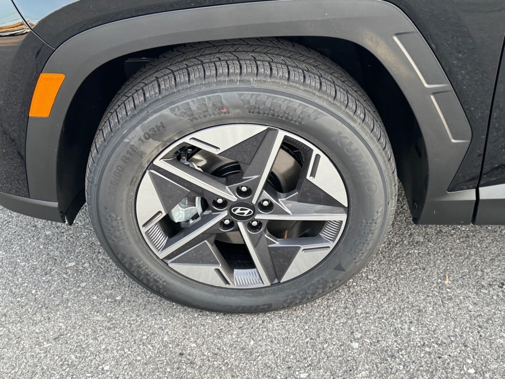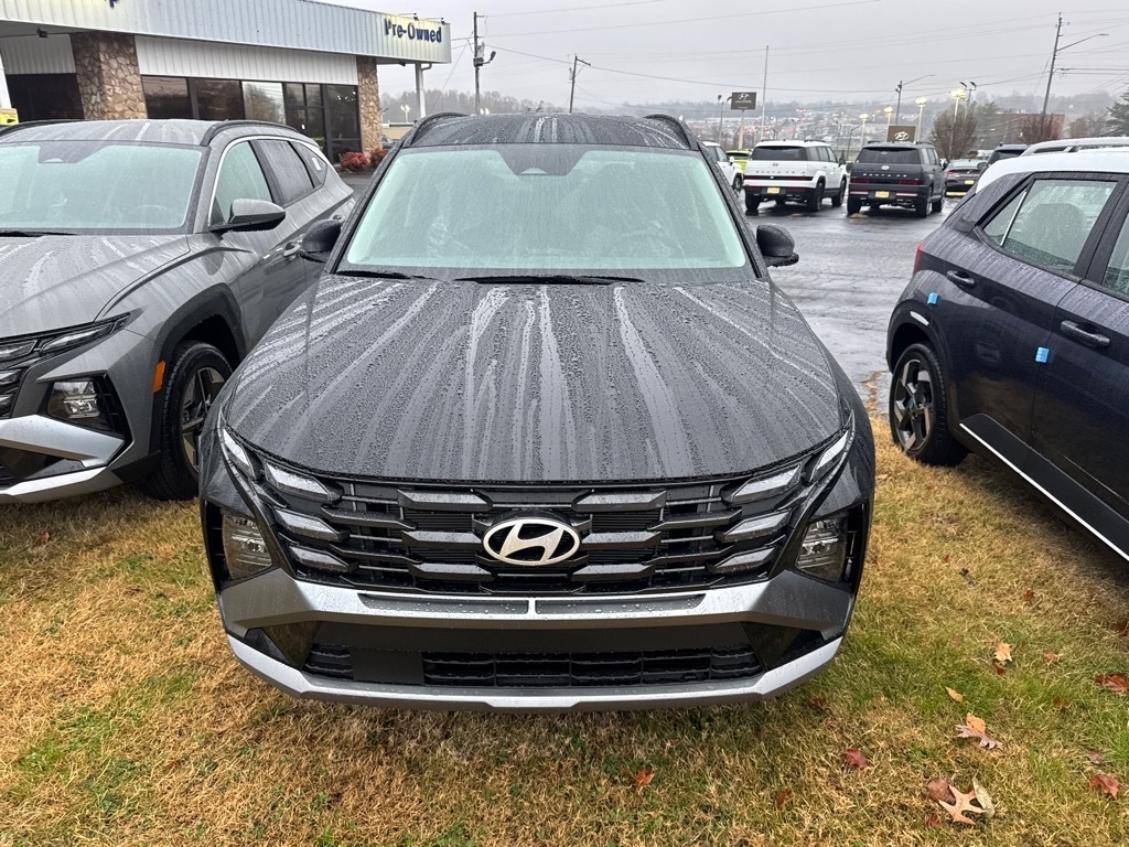 INFORMATION ABOUT THIS VEHICLE AND IT FEATURES:, AWD. Option Group 01, AWD, 18x 7.5J Alloy Wheels, 4-Wheel Disc Brakes, 6 Speakers, ABS brakes, Air Conditioning, All Season Fitted Liners, Alloy wheels, AM/FM radio: SiriusXM, Apple CarPlay & Android Auto, Auto High-beam Headlights, Automatic temperature control, Brake assist, Bumpers: body-color, Cargo Blocks, Cargo Net, Cargo Tray, Carpeted Floor Mats, Delay-off headlights, Driver door bin, Driver vanity mirror, Dual front impact airbags, Dual front side impact airbags, Electronic Stability Control, Emergency communication system: Bluelink , First Aid Kit, Four wheel independent suspension, Front anti-roll bar, Front Bucket Seats, Front Center Armrest, Front dual zone A/C, Front reading lights, Fully automatic headlights, H-Tex Leatherette Seat Trim, Heated door mirrors, Heated Front Bucket Seats, Heated front seats, Illuminated entry, Low tire pressure warning, Occupant sensing airbag, Outside temperature display, Overhead airbag, Overhead console, Panic alarm, Passenger door bin, Passenger vanity mirror, Power door mirrors, Power driver seat, Power Liftgate, Power steering, Power windows, Radio data system, Radio: AM/FM/HD Audio System, Rear anti-roll bar, Rear reading lights, Rear seat center armrest, Rear side impact airbag, Rear window defroster, Rear window wiper, Remote keyless entry, Security system, Speed control, Split folding rear seat, Spoiler, Steering wheel mounted audio controls, Tachometer, Telescoping steering wheel, Tilt steering wheel, Traction control, Trip computer, and Variably intermittent wipers. Phantom Black 2026 Hyundai Tucson SEL AWD 8-Speed Automatic with SHIFTRONIC 2.5L I4 DGI DOHC 16V LEV3-SULEV30 187hp 24/30 City/Highway MPG