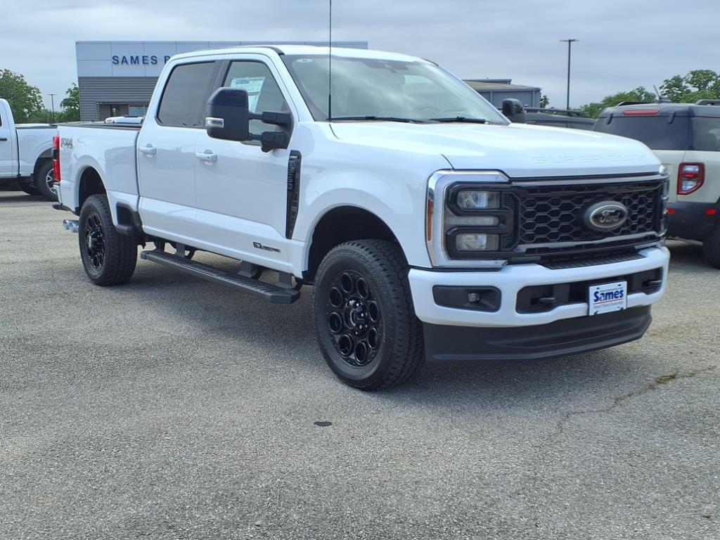 Want us to come to you No problem! Virtual Test Drives and Trade Appraisals: Just ask and we'll send you a live video walk around of the vehicle you are considering, and we can do the same for your trade. Online Financing: Complete your finance application online and speed up your car-buying process. At Home Delivery: We'll bring the vehicle and paperwork to you! Thanks for the opportunity to serve our local community and earn your business. Sames Bastrop Ford is pumped up to offer this attractive 2025 Ford F-250SD Lariat in Oxford White with Activex 40/Console/40 Seat Black Onyx interior. Well equipped with Black Appearance Package (6Ebony Black Angular Running Boards, Black Painted Front Grille Surround, Body Color Front & Rear Bumpers, Ebony Black Painted Mirror Caps, Rear Wheel Well Liners (Pre-Installed), Tough Bed Spray-In Bedliner, and Wheels: 20Machined & Ebony Black High Gloss), F-250 >10K GVWR Package, FX4 Off-Road Package (Hill Descent Control, Off-Road Specifically Tuned Shock Absorbers, and Unique FX4 Off-Road Box Decal), Order Code 608A, 3.73 Axle Ratio, 4-Wheel Disc Brakes, 8 Speakers, ABS brakes, Adjustable pedals, Air Conditioning, Alloy wheels, AM/FM radio: SiriusXM with 360L, Auto High-beam Headlights, Auto-dimming Rear-View mirror, Automatic temperature control, BLIS w/Cross-Traffic Alert, Brake assist, Bumpers: chrome, Compass, Delay-off headlights, Driver door bin, Driver vanity mirror, Dual AGM 68 AH Battery, Dual front impact airbags, Dual front side impact airbags, Electronic Stability Control, Electronic-Locking w/3.31 Axle Ratio, Emergency communication system: SYNC 4 911 Assist, Engine Block Heater, Flow-Through Console, Front ActiveX Seating Material 40/Console/40 Seats, Front anti-roll bar, Front Bucket Seats, Front Center Armrest, Front dual zone A/C, Front fog lights, Front License Plate Bracket, Front reading lights, Fully automatic headlights, Garage door transmitter, Heated door mirrors, Heated front seats, Heated rear seats, Heated steering wheel, Illuminated entry, Low tire pressure warning, Memory seat, Navigation System, Outside temperature display, Overhead airbag, Overhead console, Panic alarm, Passenger door bin, Passenger vanity mirror, Pedal memory, Power door mirrors, Power driver seat, Power passenger seat, Power steering, Power windows, Power-Sliding Rear-Window w/Defrost, Privacy Glass, Radio: B&O Sound System by Bang & Olufsen, Rain sensing wipers, Rear Parking Sensors, Rear reading lights, Rear seat ce